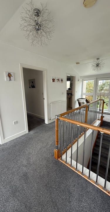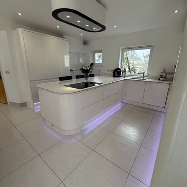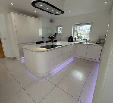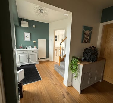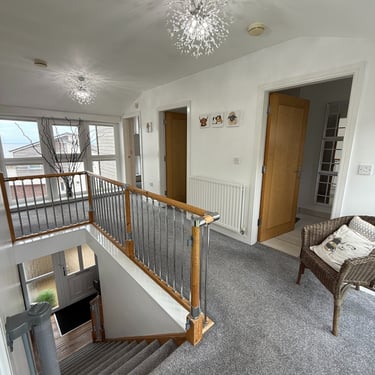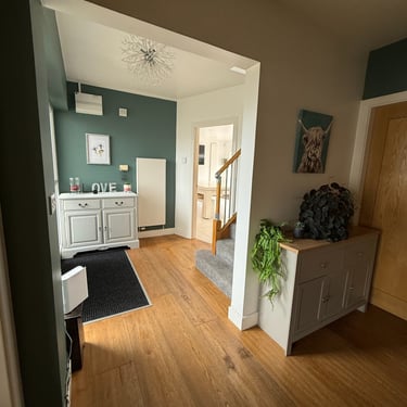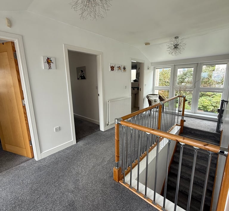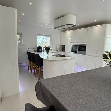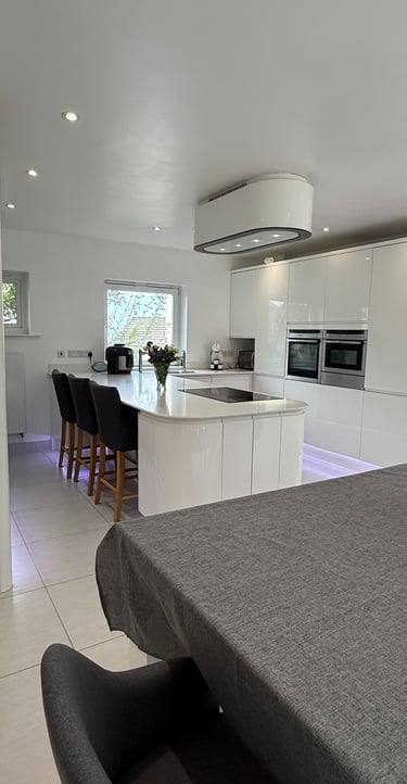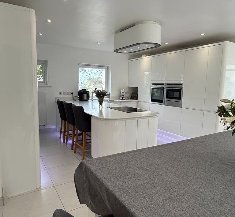 Light and spacious kitchen with double ovens, microwave, Ninja air fryer, hot tap, dishwasher & hob.