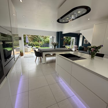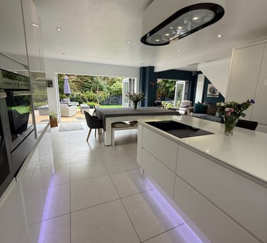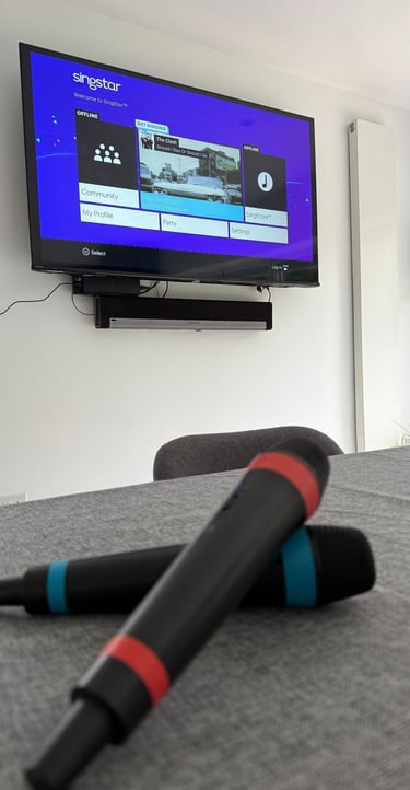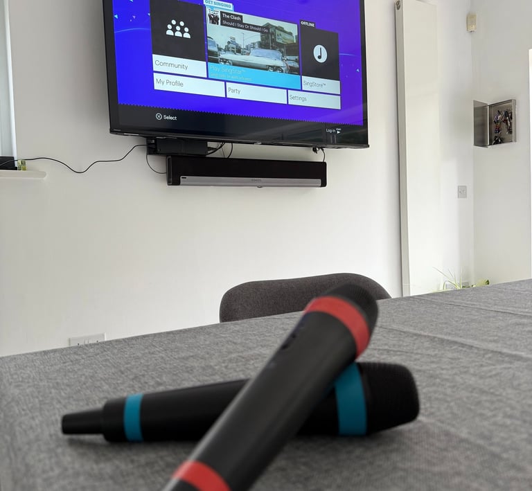 Open plan kitchen / dining room / sitting area, with pool table & by-folds onto garden. Large flat screen TV with sonos sound system and Karaoke