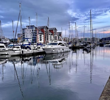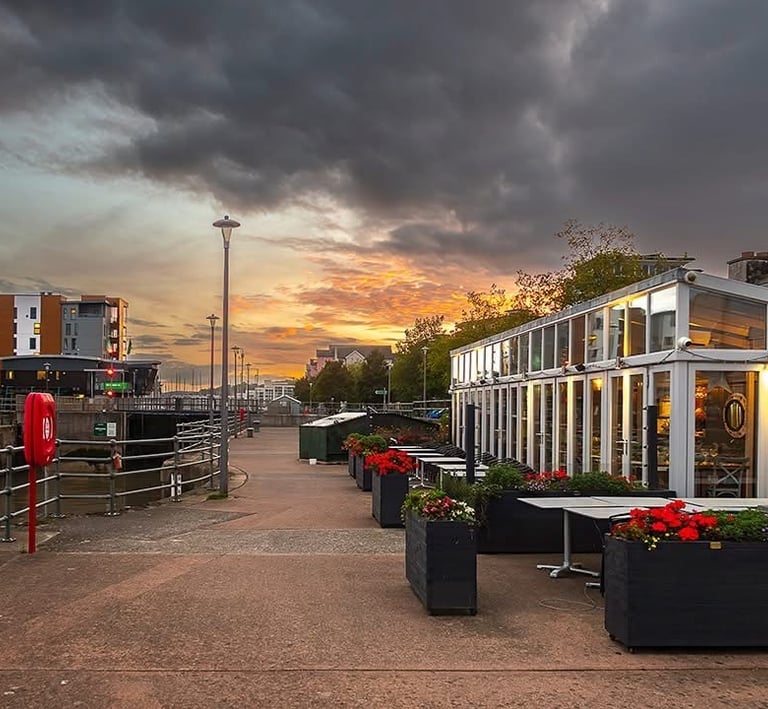 Portishead Marina, located in North Somerset, England, is a vibrant waterside development with a variety of restaurants, shops, and walking paths. The marina occupies the site of a former industrial dock that was redeveloped starting in 2000