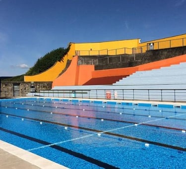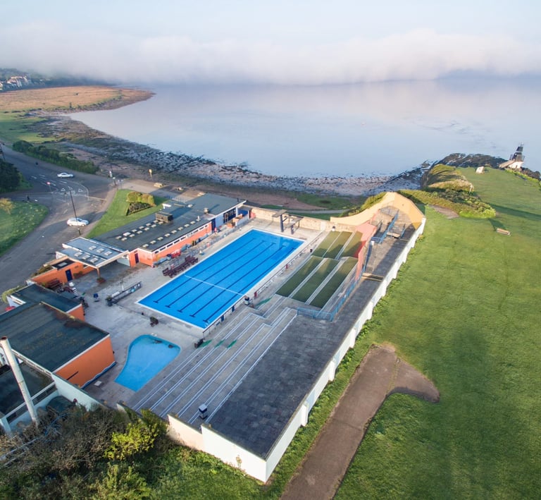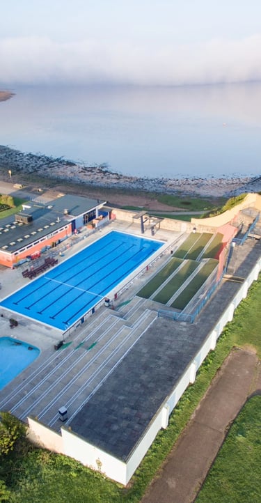 Portishead Lake Grounds is a picturesque, traditional Victorian park with a boating lake and formal gardens, while the Lido is a separate, popular heated open-air swimming pool situated within the grounds. Visitors can enjoy activities like the newly opened skatepark, using the playground, or swimming in the Lido, with refreshments available from nearby cafes. The site is a major recreational space for the community, offering views across the Severn Estuary and connecting to coastal paths.