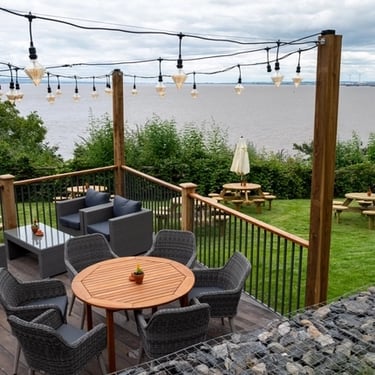 45 min walk via the coastal path. The pub is situated at 58 Nore Road, on a hillside overlooking the Severn Estuary. It features floor-to-ceiling windows and a tiered outdoor seating area to make the most of the views.
